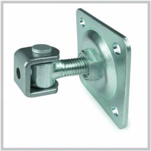 Gond supérieur réglable M27 62/102 avec plaque et rondelle à souder - F : 27 mm - D : 65 mm - C : Réglage Mini. 62 mm Maxi 102 mm - B : 24.5 mm
