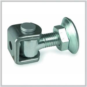 | | (Code: 4246)  Gond supérieur réglable M27 78-110 avec cavalier et rondelle à souder - F : 27 mm - D : 65 mm - C : Réglage Mini. 78 mm Maxi 110 mm - B : 31 mm