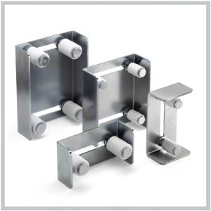 Bride de guide à viser rouleaux réglable maxi 92 mm, L180-H88-2R-D30 - 2 Rouleaux de diam. 40 mm - L : 180 mm - Réglage Mini. 0 mm / Maxi 92 mm