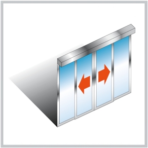 Le système d’entraînement est homologué TÜV et CE, fonctionnement...Entraînement GILGEN de type SL35 pour porte coulissante à 4 Vantaux Télescopique